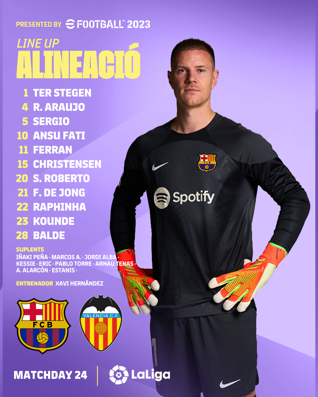 "Barselona" - "Valensiya" uchrashuvi uchun jamoalarning boshlang‘ich tarkibi ma’lum
