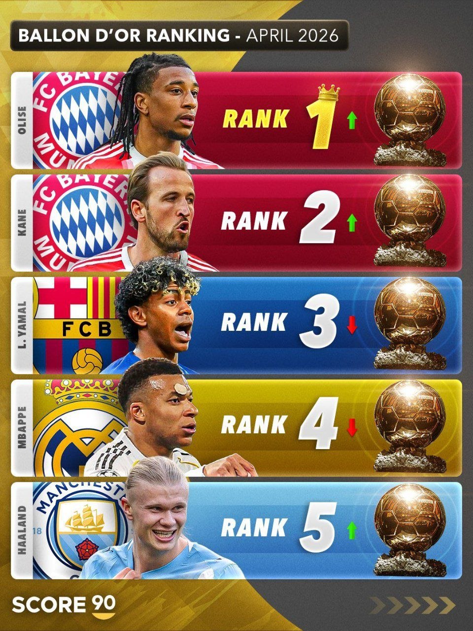 Joriy mavsumda koʻplab futbolchilar oʻzining yuqori klassdagi oʻyinini koʻrsatib kelmoqda. Lamin Yamal, Harri Keyn, Erling Xoland, Kilian Mbappe Maykl Olise va yana bir nechta futbolchilarni sanash mumkin. Joriy yilda jahon chempionati bahslari boʻlib oʻtishini inobatga olsak, katta ehtimol bilan mundial gʻolibligini qoʻlga kiritgan terma jamoa futbolchisida Oltin toʻpni yutish imkoniyatlari baland boʻladi. Bu tarafdan olib qaralsa, Erling Xolandda imkoniyat eng kam desak boʻladi. Chunki Norvegiya terma jamoasining mundialda gʻalaba qozonish imkoniyati deyarli ilojsiz. Kilian Mbappe esa terma jamoasi safida boshqacha futbolchiga aylanadi va mundialda uning ham imkoniyat darajasi yuqori. Biroq Fransiya turnirda gʻolib boʻlsa-yu, "Bavariya" klubi Yevropa Chempionlar ligasida zafar quchadigan boʻlsa, tarozining pallasi Maykl Olise tomonga ogʻib ketadi. Amaldagi Yevropa chempioni Ispaniya terma jamoasi jahon chempionatida ham furor koʻtaradigan boʻlsa, Yamal katta sahnaga chiqishi ham mumkin. Bundan tashqari, mundiallarda doim ham muvaffaqiyatli ishtirok etmayotgan Angliya terma jamoasi chempionlikni qoʻlga kiritса, u holda Harri Keyn Oltin toʻp uchun asosiy daʼvogarga aylanadi. Tanganing yana bir tomoni bor, agar Portugaliya jahon chempionatini, PSJ esa Yevropa Chempionlar ligasini yutadigan boʻlsa, Vitinʼya va Joao Neveshning imkoniyatlari oshib ketadi. Ha, aytgan amaldagi Oltin toʻp sohibi Usmon Dembeleni ham chetda qoldirmasligimiz kerak.