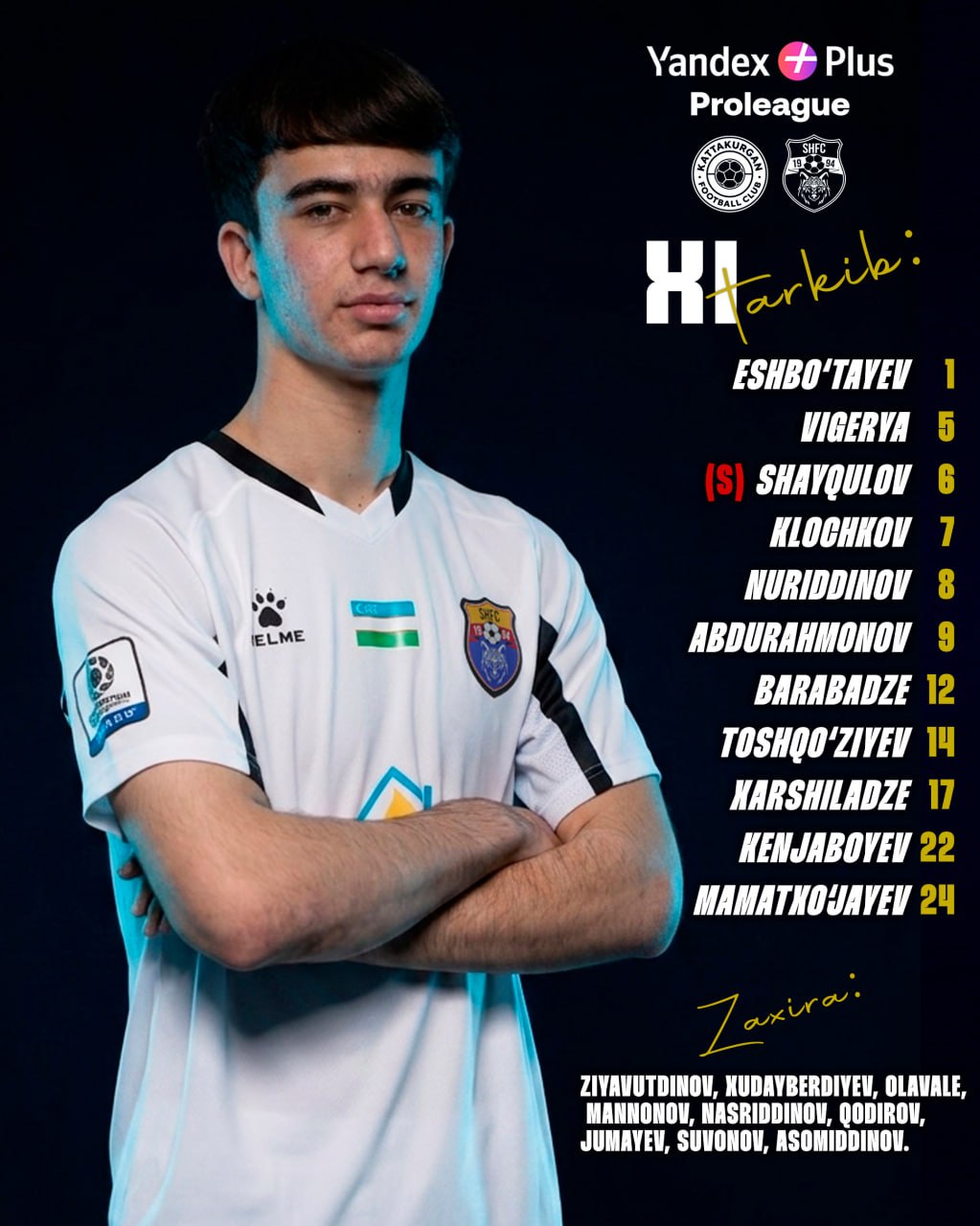 Про лиганинг 2-туридан ўрин олган “Каттақўрғон” ҳамда “Шўртан” жамоалари ўртасида учрашув бошланиш арафасид. Ушбу беллашув олдидан иккала клубнинг бошланғич таркиблари эълон қилинди.
